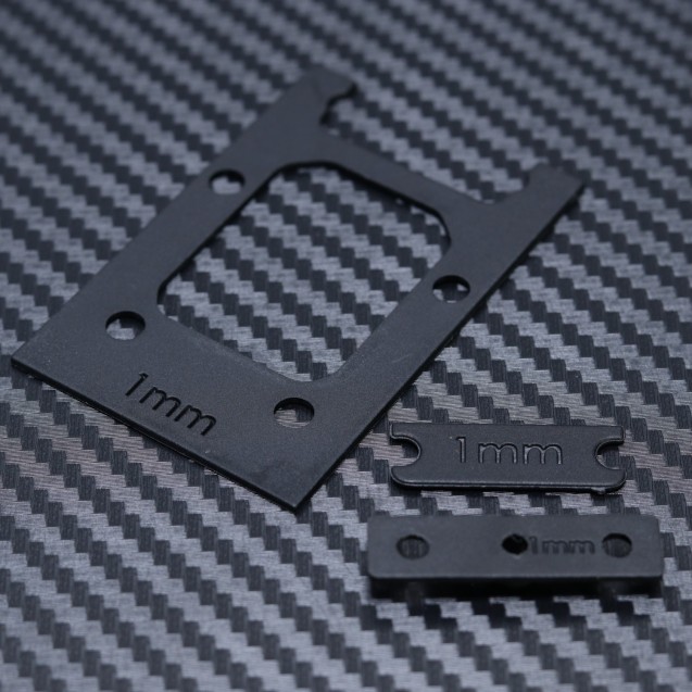 Front 1mm plastic gearbox spacer set to use between MYB0001 3mm Main (STD) chassi and MYB0006 Front gearbox for Mayako MX8 (-22).