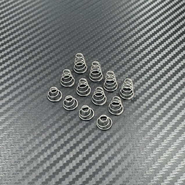 6mm, 9mm and 12mm internal shock springs, to be placed on the shock shaft, below the piston inside the shock body. The smaller diameter rests on the piston shim. These springs help the car drive more flat and stable, especially good on high grip tracks.